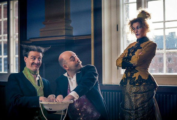 Es endet gut, selbstverständlich. Bjarne Antonisen und Morten Christensen als Freunde sind grandios. Mit verrücktem Augenspiel, grotesken Grimassen, abrupten Bewegungen und absurd verdrehten Sätzen sind sie eine gute Mischung aus alten Stummfilmen wie Laurel and Hardy und das Beste aus der französischen Farce-Tradition. Antonisen als dickbäuchiger Lenglumé, Christensen als Mistingue mit roter Nase und abstehendem Haar. Um sie herum Hanne Hedelund als Lenglumés misstrauischer Ehefrau und Kasper Orum als schmieriger Diener und gemütlicher Vetter in Geldschwierigkeiten. Herrliches Schauspiel auf der ganzen Linie - eine großartige Arbeit von Regisseurin Lydia Bunk im Nadia Nabil Korsbæks Bühennbild eines großkarierten Wohnzimmers mit vielen Türen.