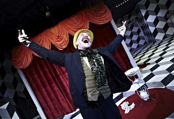 Derud, hvor bevægelser og handlinger bliver til maskinelle mekanismer, åndløse reflekser, rene gentagelser. Derud, hvor mennesket bliver et dyr, og publikums latter stivner i en grimasse, fordi man eventuelt tager pis på os.