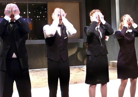 Um sie herum ein Chor von Stimmen der Vernunft, hier als Diener gekleidet, mit Bjarne Antonisen als klug abgewogenem Chorführer.