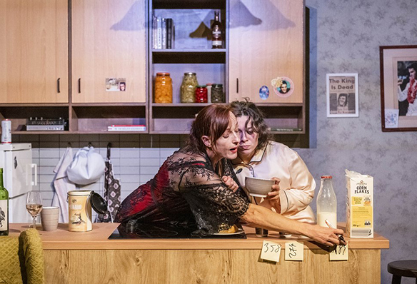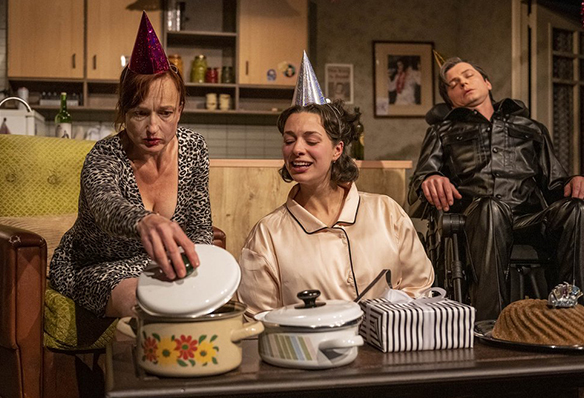Es ist immer wieder erstaunlich, was die Bühnenkünstler auf der wirklichen kleinen Bühne des Spinnbau-Ostflügels herbeizaubern. Im Falle des Stücks KOCHEN MIT ELVIS ist es ein von Christoph Gehre gebautes, eher tristes Apartment mit Küche, Wohnbereich und Toilette. (...) In den vier Wänden herrschen fortan Übergewicht, Behinderung, Unglück – jede Menge schwarzer Humor – und ziemlich viel Sex. (...) Die Chemie zwischen (den Schauspielern) Euen, Gutmann und Ganz-Kuhl stimmt, sie nehmen wunderbar jede weitere Stufe der Eskalation. Doch auch Sven Zinkan hat am Ende mehr zu tun als nur teilnahmslos im Rollstuhl zu verharren. Denn zuweilen erwacht Dad aus seiner Starre und trällert Elvis-Hits mit sehr guter Stimme. Er karikiert auf das Herrlichste den "King" in seinen späteren Jahren, als er bereits von Alkohol und Tablettensucht gezeichnet war und sich gleichzeitig in erschreckend-lächerliche Hybris aufschwang. Doch Zinkans Leistung besteht gerade darin, dass er beim Karikieren eben nicht überzieht und das Glamourösedes Superstars immer noch erahnen lässt. Bei aller schrägen Komik lässt die Inszenierung von Lydia Bunk ohnehin Raum für nachdenkliche Momente.