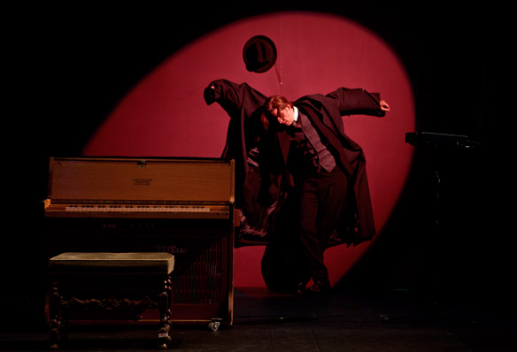 Ein Mann wacht eines Morgens auf und findet sich in einen Käfer verwandelt. Ein anderer Mann hungert sich zu Tode für seine Kunst. Ein dritter Mann läuft ergebnislos von Büro zu Büro. In der Vorstellung KAFKA finden sich die zentralen Figuren von Franz Kafkas Werk auf der Bühne. Der Autor und Mensch Kafka wird umgeben, gejagt und getröstet von Figuren aus seinem Werk, von seinem Vater, Gregor Samsa, Josef K., Karl Rossmann und Fräulein Bürstner. In einer Welt, wo alle absoluten Werte ihre Bedeutung verloren haben und Schuld und Angst herrschen,gehen vier Schauspieler auf eine Reise durch das Werk Franz Kafkas. Wie wird es Kafka gehen , wenn Traum und Alptraum sich vermischen? Kann er die überwältigende Autorität überwinden, die droht ihn zu zerquetschen? Und was ist mit der Liebe,wie übersetzt man die Leidenschaft die in Liebesbriefen gebündelt ist in körperliche Leidenschaft zwischen zwei Menschen ?