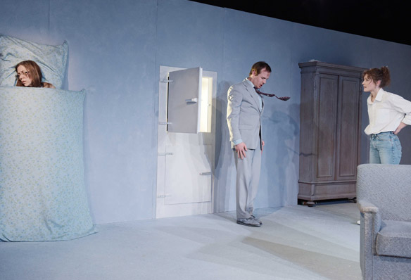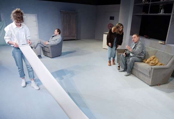 Lydia Bunk inszeniert ihre Spielfassung bewusst einfach, erzählerisch, naturalistisch, auf den ersten Blick scheinbar gänzlich unmodern. Ohne Chichi, ohne Live-Musik, ohne Videos. Ohne Lärm und Körperliches. Ohne Fremdtext-Splitter und diskursives Beiwerk. Und siehe: geht! Geht sogar sehr gut. Passt gut zum Stück, passt gut auf die Studiobühne des Magdeburger Schauspiels. Die Schauspieler dürfen dem Affen Zucker geben und machen, wo es angebracht ist, reichlich Gebrauch davon.