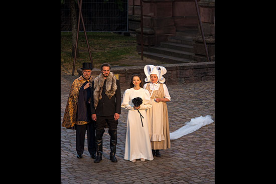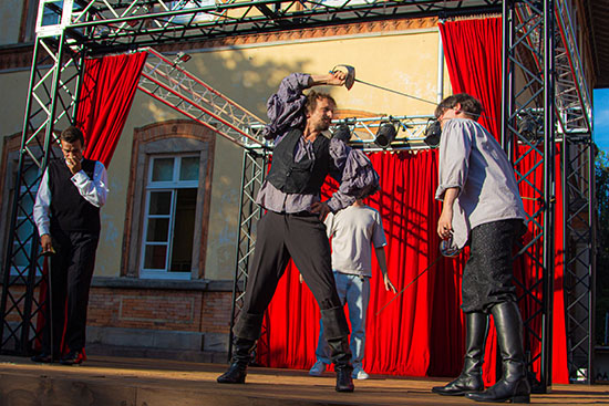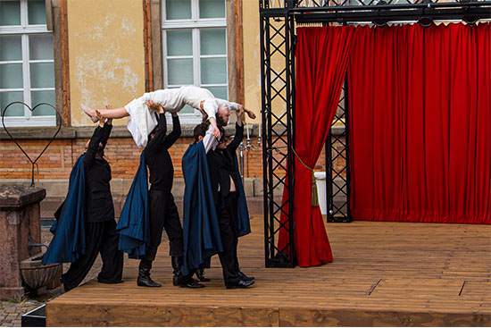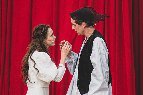 Freilichtaufführung „Shakespeare in Love“ auf dem Marktplatz auch mit einem kleinen Jahrmarkt mit Karussell, Glücksspielen und Gaumenfreuden.